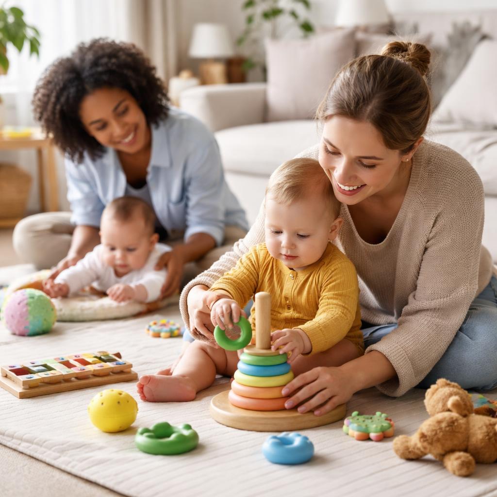 Favorisez les activités qui encouragent l’autonomie et la confiance en ses capacités : des parcours doux pour ramper, des objets à empiler, des cache‑cache sensoriels. Le but est de soutenir le désir d’explorer tout en restant un repère stable et rassurant.